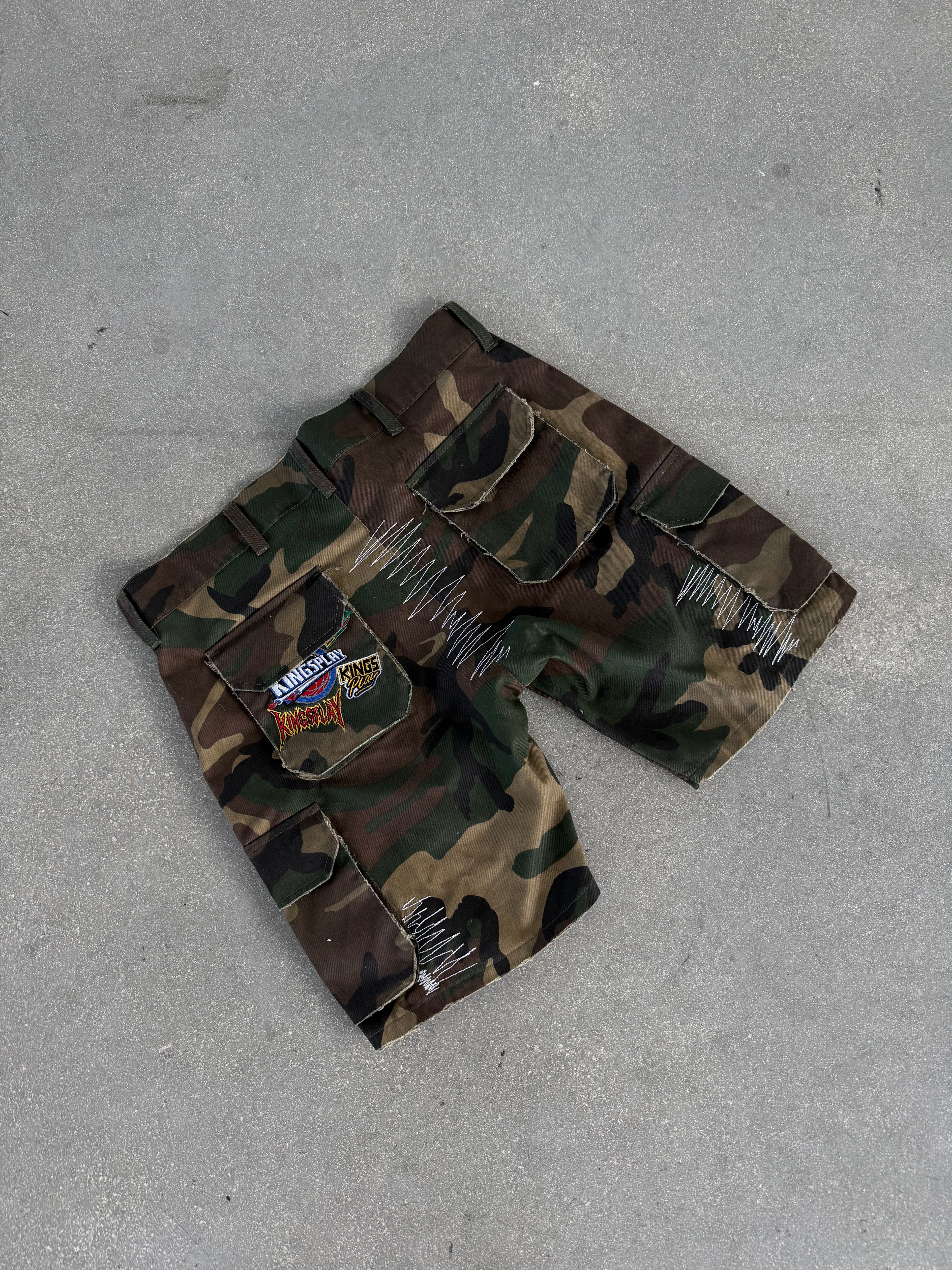 Stand out with our Patched Up Camo Jorts, the perfect mix of rugged streetwear and everyday comfort. Featuring unique patchwork details, these limited edition jorts make a bold statement while staying versatile for any fit.